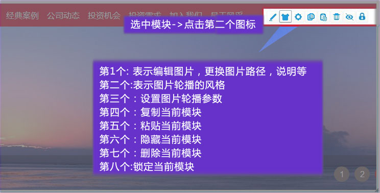 進入網(wǎng)站編輯模式, 選中模塊,在右上方點擊第二圖標