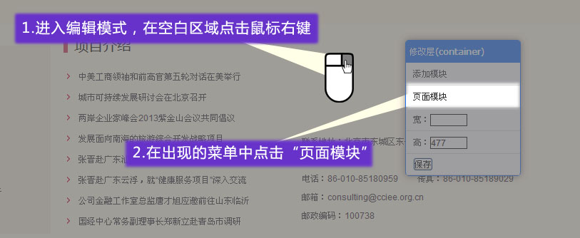 進入網(wǎng)站編輯模式,在空白區(qū)域點擊鼠標右鍵