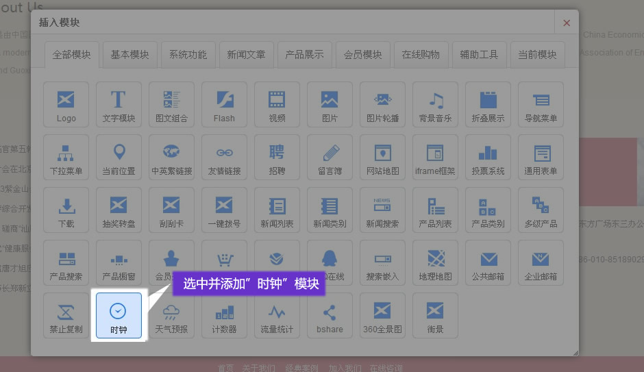 1. 在適當(dāng)?shù)奈恢,添加?b>時(shí)鐘”模塊