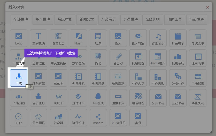 在適當?shù)奈恢锰砑?b>“下載”模塊