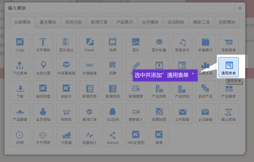 在適當(dāng)?shù)奈恢,添加?b>通用表單”模塊