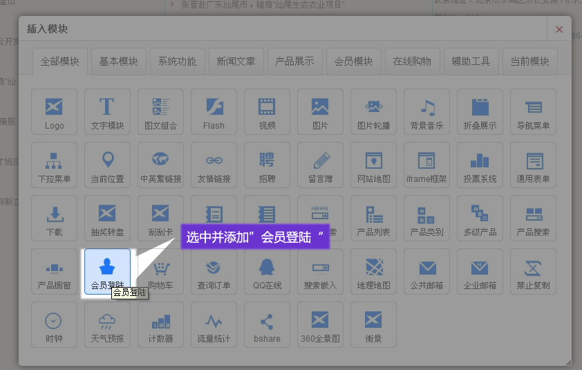 在適當(dāng)?shù)奈恢,添加?b>會員登陸”模塊