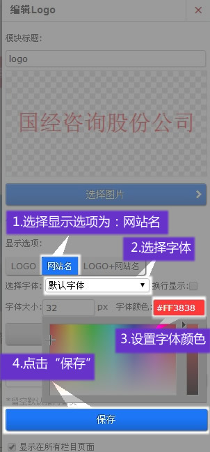 選擇LOGO顯示選項為網站名