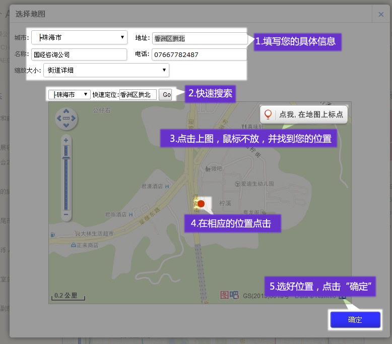 2. 填寫(xiě)您的具體地址,并選中你的位置