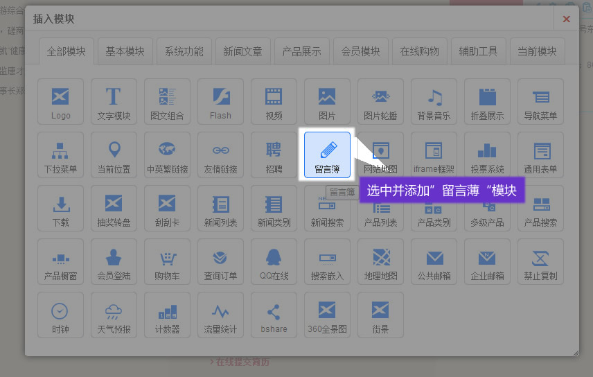 在適當?shù)奈恢,添加?b>留言薄”模塊