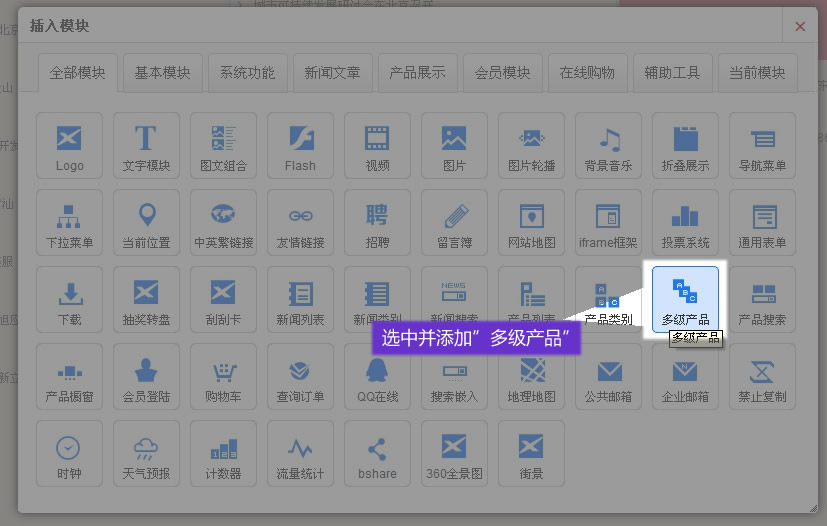添加多級(jí)產(chǎn)品模塊