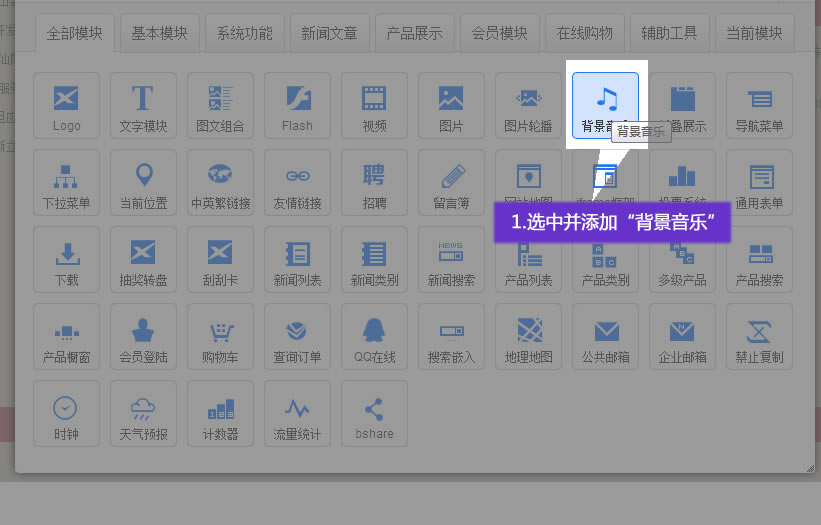 1. 在適當(dāng)?shù)奈恢锰砑印?b>背景音樂(lè)”模塊