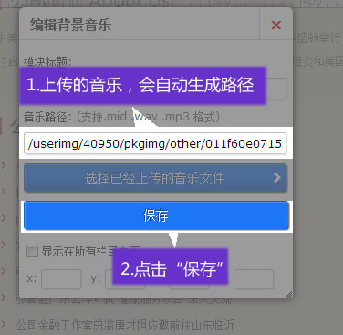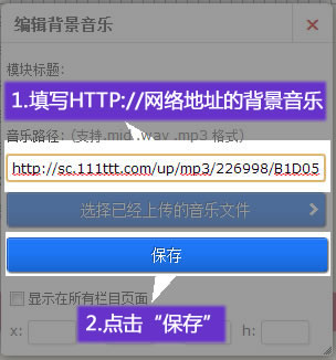 6. 設(shè)置完成,點(diǎn)擊保存。預(yù)覽網(wǎng)站試聽您的背景音樂(lè)