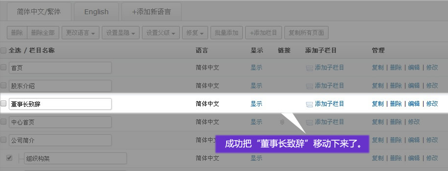 點(diǎn)擊左鍵單擊需要移動(dòng)的欄目不放,上下拖動(dòng)