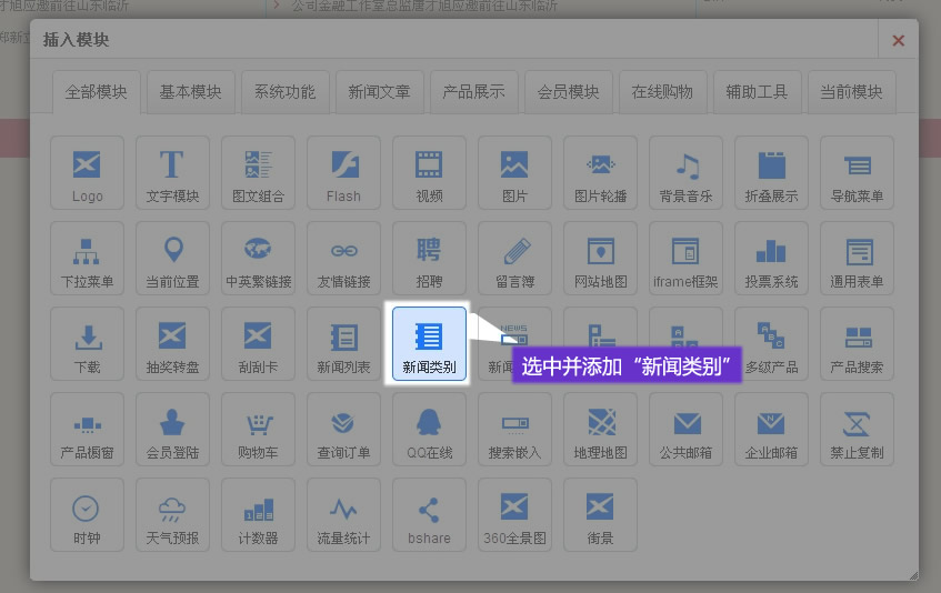 在適當?shù)奈恢茫砑印?b>新聞分類”模塊
