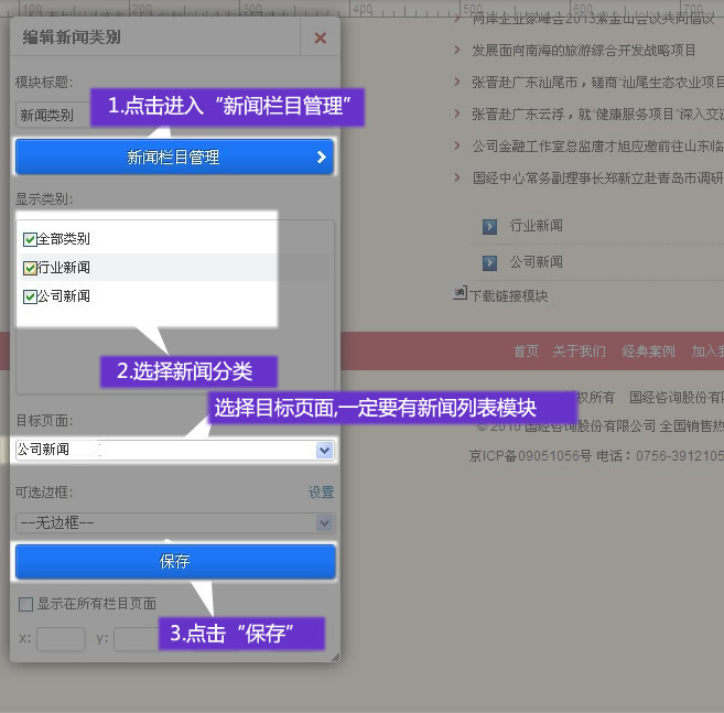 選擇新聞分類,并選擇目標頁面