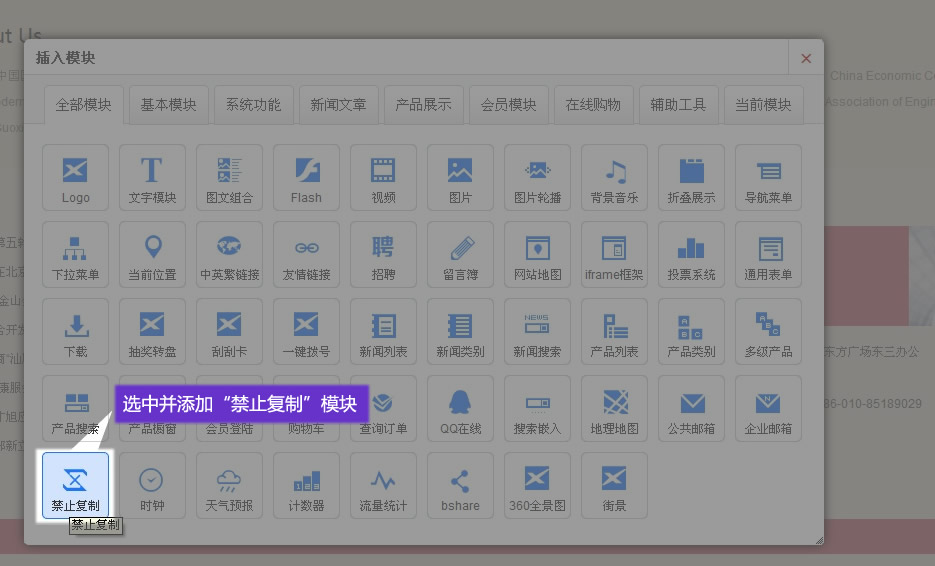 在適當(dāng)?shù)奈恢茫砑印?b>禁止復(fù)制”模塊