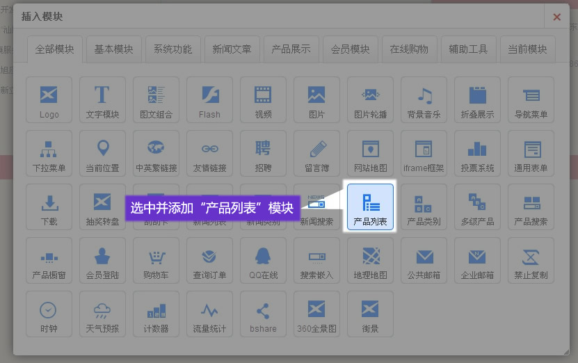 在適當(dāng)?shù)奈恢,添加?b>產(chǎn)品列表”模塊