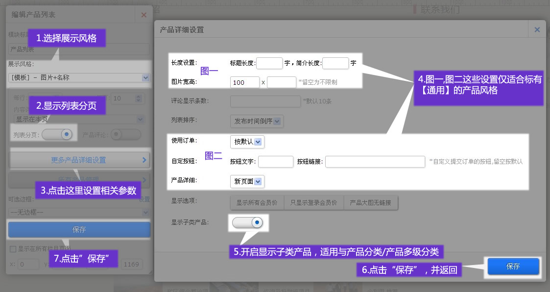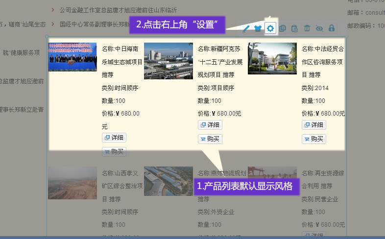設(shè)置產(chǎn)品列表相關(guān)信息,并“