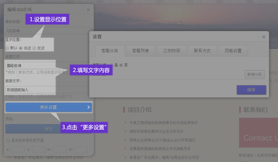6. 添加“聯(lián)系方式”并保存,聯(lián)系方式僅使用于“新”風(fēng)格