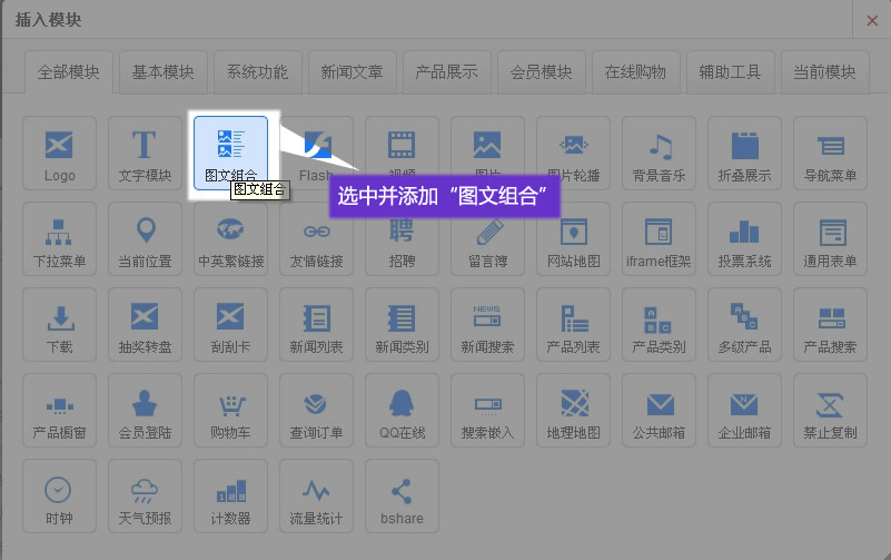 在適當(dāng)?shù)奈恢谩?b>添加圖文”模塊