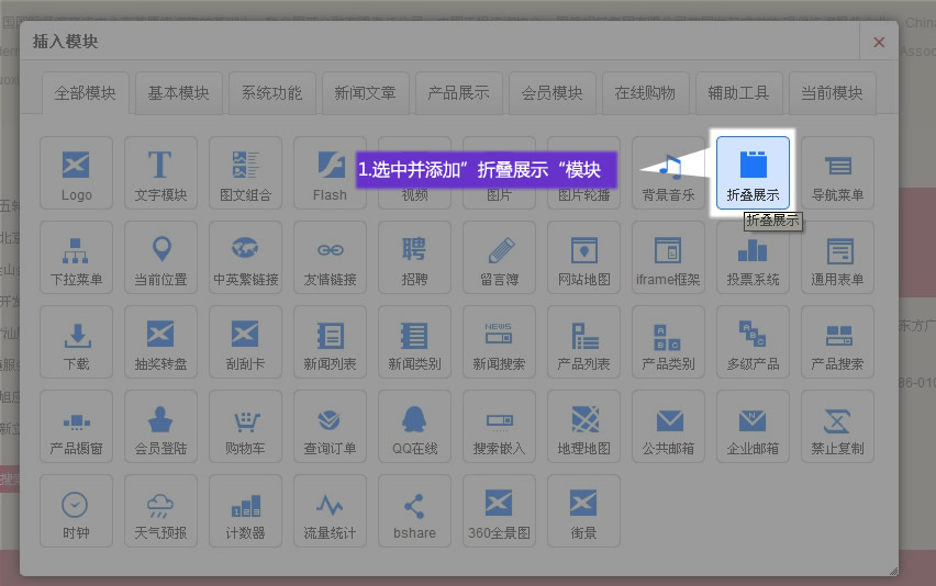 2. 選擇折疊模塊跳轉(zhuǎn)鏈接